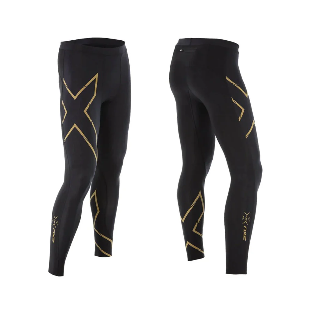 2XU Light Speed MCS Run Compression Tights, Herren, Laufhose, black/gold reflective, schwarz/gold